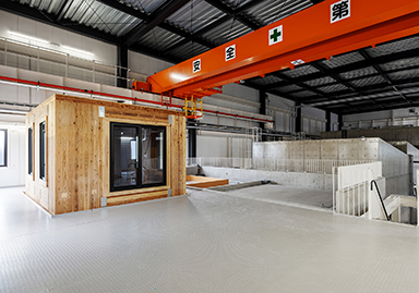 The Sound Lab is a facility dedicated to advancing sound technology development. It enables high-performance “development of architectural acoustic products” and “visualization of sound environments” to meet diverse customer demands, along with “improved simulation technology” for acoustic design applicable to all types of buildings. In addition to a reverberation chamber, an anechoic chamber, and a box-type laboratory for measuring the fundamental acoustic performance of building materials and structures, it features a timber laboratory utilizing CLT for the structural frame. Each laboratory is equipped with high-performance experimental and measurement devices, making it a facility for conducting various performance evaluations and experiments related to sound. We participated in this project as a design collaborator for Naikai Architects Co., Ltd., who handled the construction.