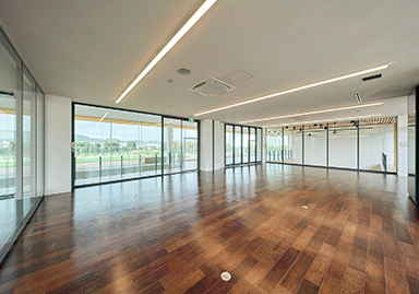 「公園との関係性」としては、公園との一体的な活動ができる「多目的広場」を1階へ、公園を見晴らせる「屋上芝生広場」を2階へ配置し、緑を借景としたマルシェ、ミニシアター、演奏会、ダンス等のパフォーミング・アート等の展示ギャラリー等、いつでも屋外的活動を楽しむことができます。