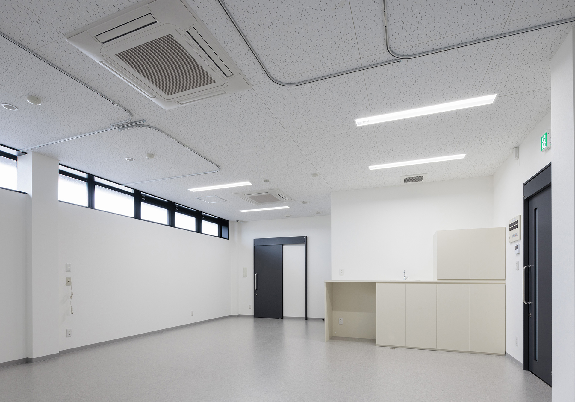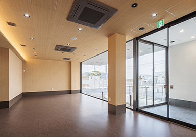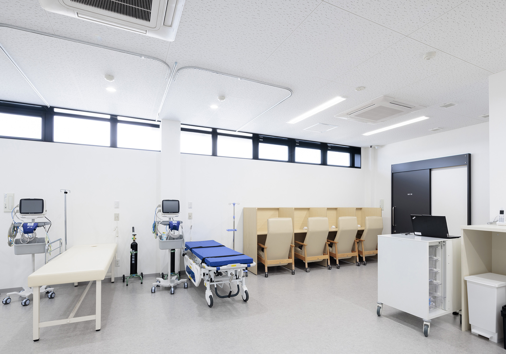 Aiming to provide community-based healthcare, this comprehensive clinic specializes in endoscopy, gastroenterology, and internal medicine, while also offering home visits. We prioritize creating an environment where patients feel at ease, achieving a space that combines functionality with warmth. The exterior features a calm color palette harmonizing with the surrounding nature, characterized by large windows that provide an open feel. Barrier-free design ensures comfortable access for everyone. The reception and waiting area features wood-grain accents in the interior design, with soft lighting and natural materials creating a pleasant atmosphere.