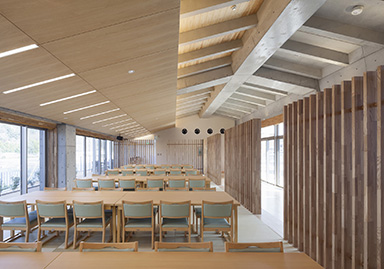 The main functions such as bathing, resting, eating, and drinking are located on the north side of the facility, and the view of the Asahikawa River and the mountains to the north is secured. Around the entrance, a pocket park with footbaths and Takebe Plaza are arranged to create a space that serves as an introduction to the facility.